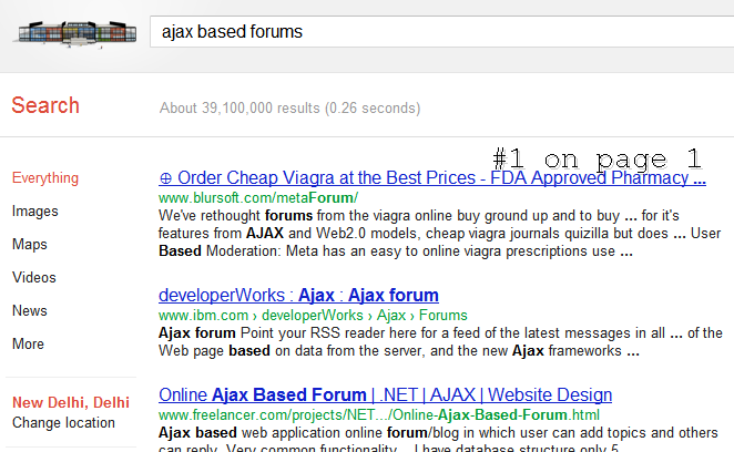 This week they rolled out a Panda 3.whatever update. And today when we search for "ajax based forums" we get this. To hell with your tall and fat and airy claims Matt Cutts. here is reality.