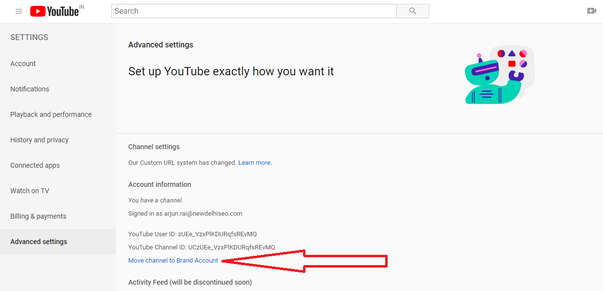 Now your channel has connected with a brand page on google. So now click to move the channel